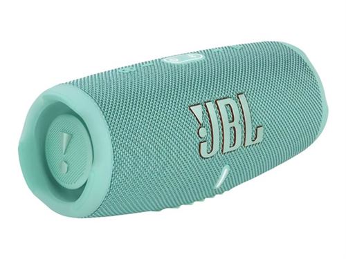 Enceinte JBL Charge 5 Bluetooth étanche avec powerbank. Design robuste et son puissant, idéale pour les activités extérieures.