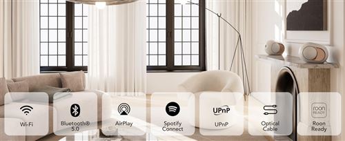 - Connectivité : Bluetooth, WiFi, AirPlay, Spotify Connect
