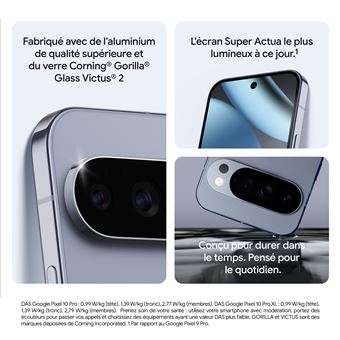 Découvrez le Google Pixel 10 Pro 6,3″ 5G Double SIM, un smartphone puissant avec un écran haute définition et une performance 5G. Offrez-le dès maintenant.
